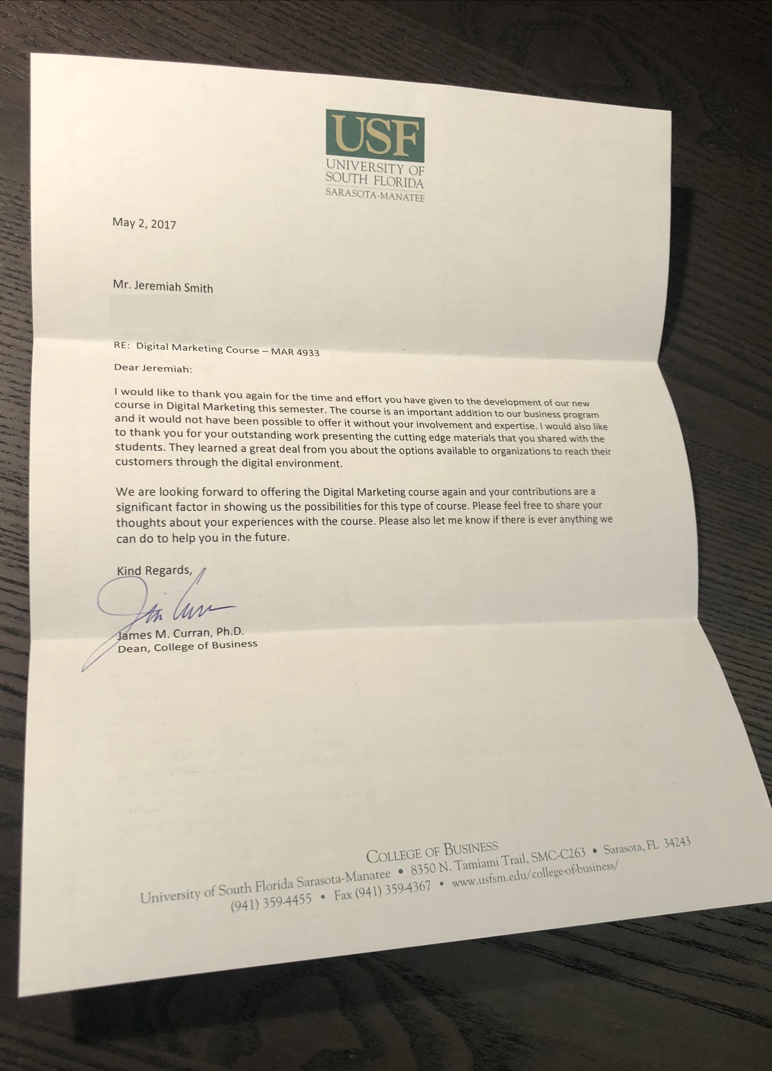 Later, I was invited to teach an SEO course as an honorary guest lecturer at the University of South Florida. I stood in front of college students and taught a subject I had learned entirely on my own. I was later sent a letter from the Dean of Business thanking me for teaching his class.